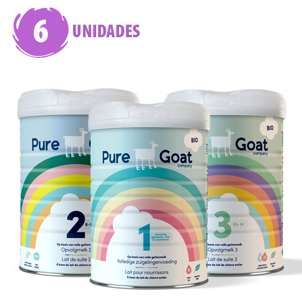 Fórmula Infantil Pure Goat (en base a leche de cabra) es un completo alimento adaptado (“maternizado”). Esto quiere decir que tiene todos los nutrientes y ácidos grasos necesarios para niños y niñas de distintas edades. Al comprar este pack promocional de 6 unidades PUEDES COMBINAR nuestras tres etapas: ETAPA 1 (0 a 6 meses), ETAPA 2 (6 a 12 meses), ETAPA 3 (desde los 12 meses). Es ideal para apoyar la nutrición de tu guagua, sobre todo en niños con alergia alimentaria. Cada tarro contiene 800 gramos.